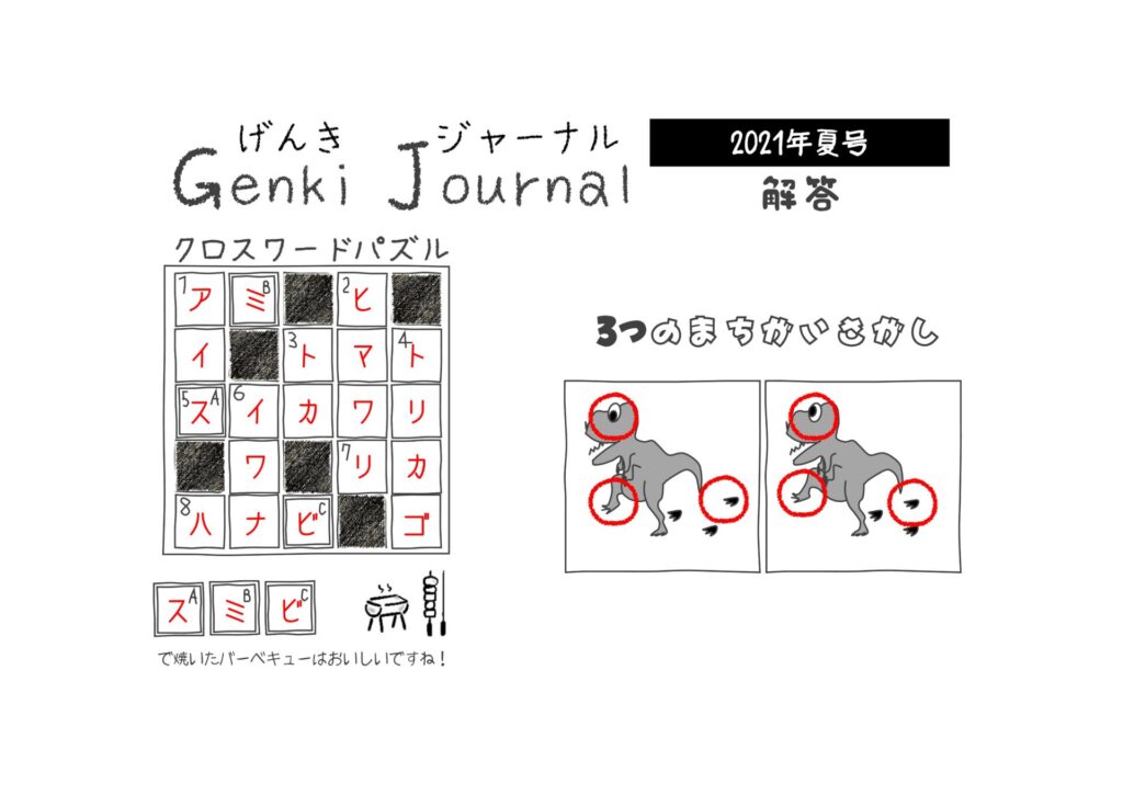 【お知らせ】Genki Journal(げんきジャーナル)夏号 クロスワードとパズルの答え合わせ