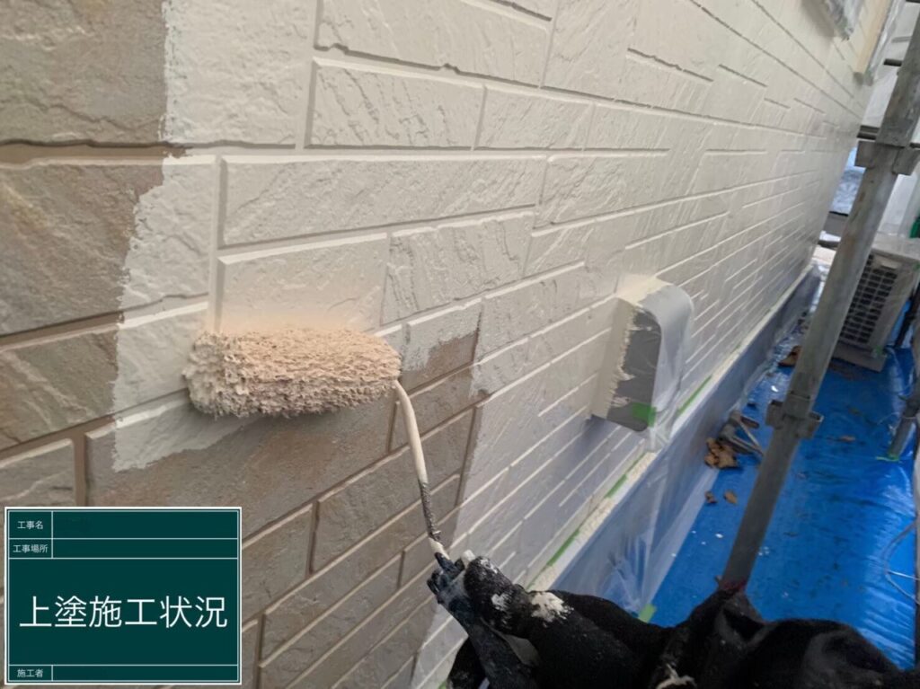上塗り施工中(1回目)