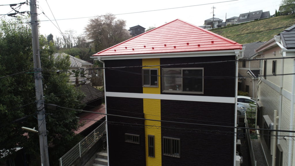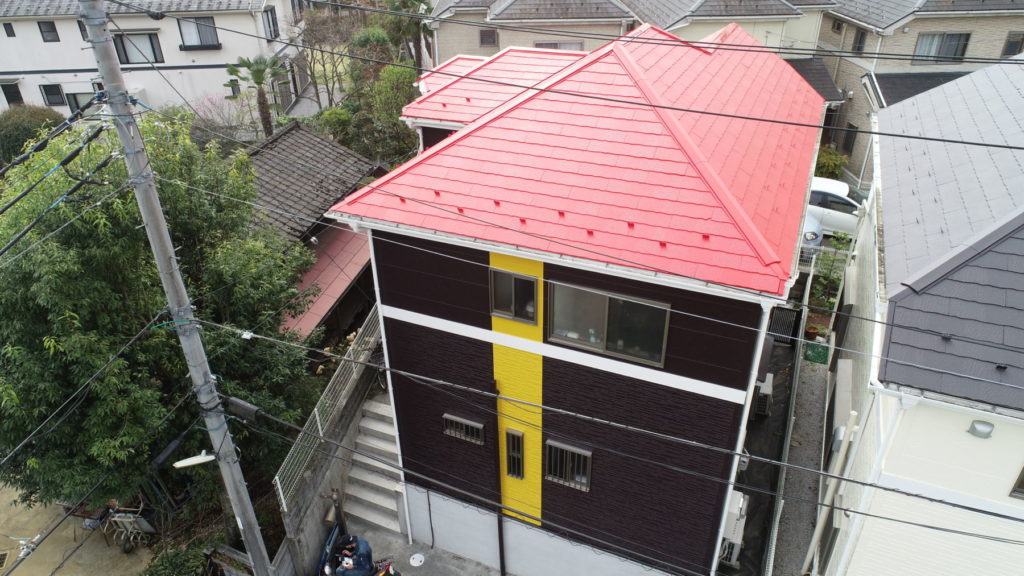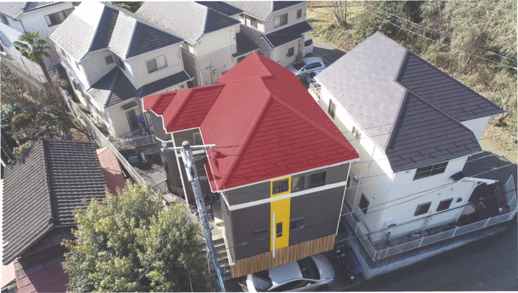 - 屋根はフェラーリを意識した原色に近い赤をチョイス。地域で一番目立つ赤になっています!