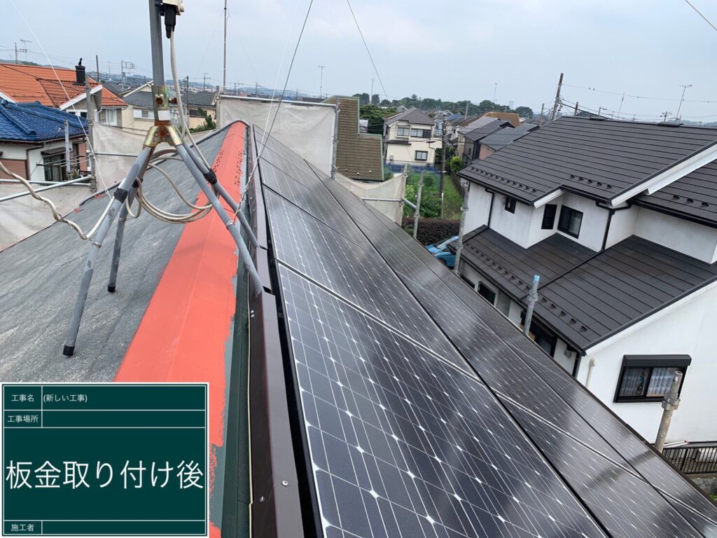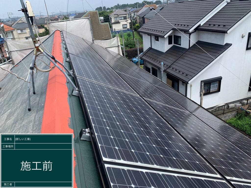 八王子市F様邸の屋根にはソーラーパネルが設置されておりますが、そのソーラーパネルの中には鳥の巣ができていました。(既に巣立ってある状態です)
