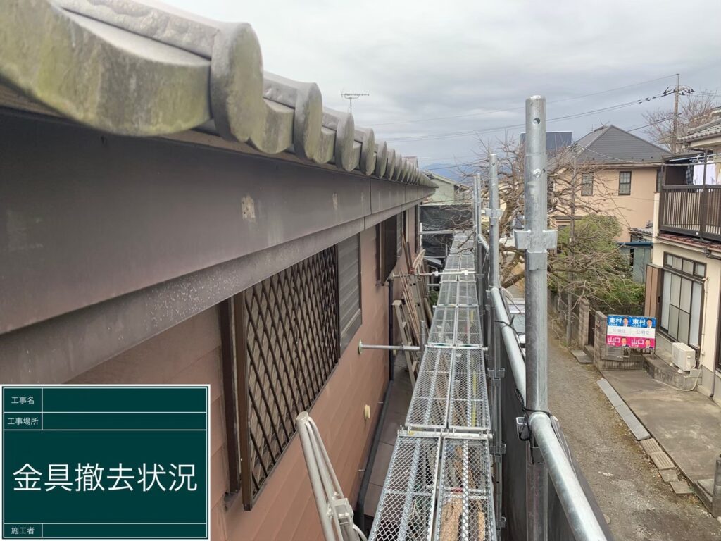 八王子市I様邸の雨樋交換では、雨樋が雪で歪んでしまったため、支えている金具も同時に交換していきます。