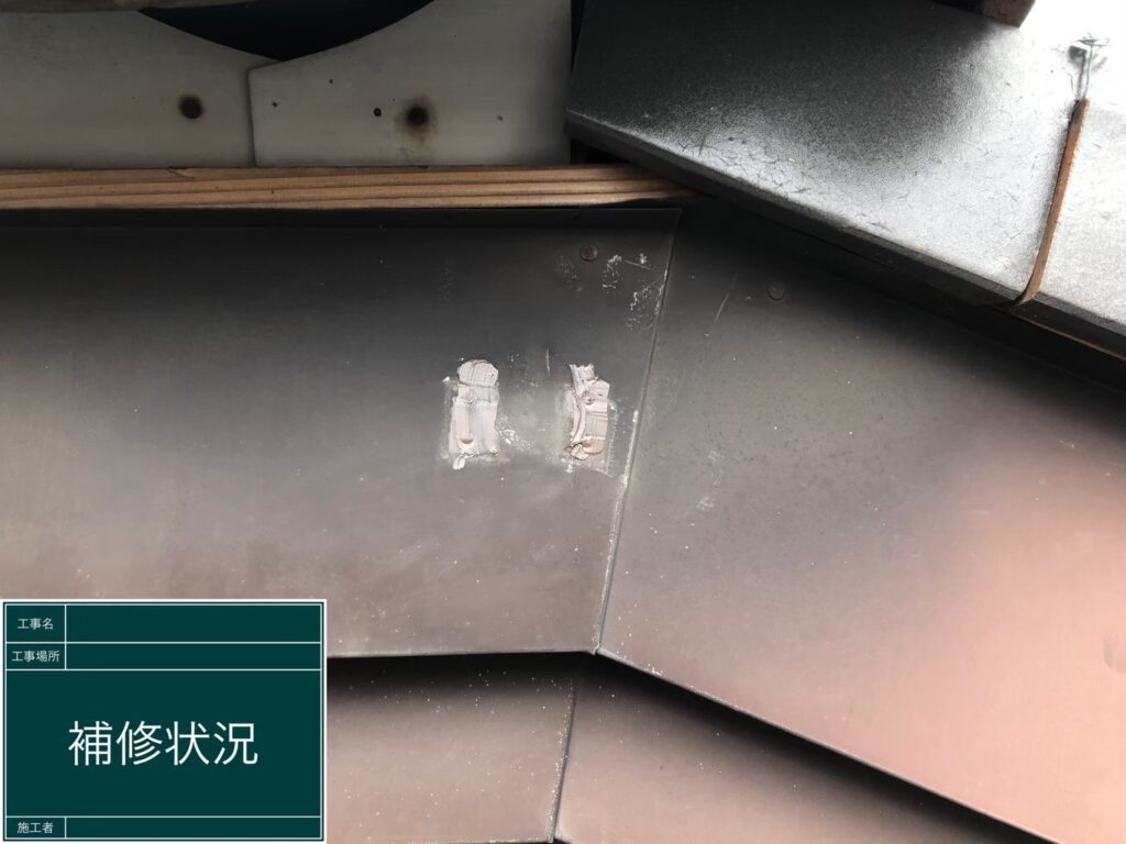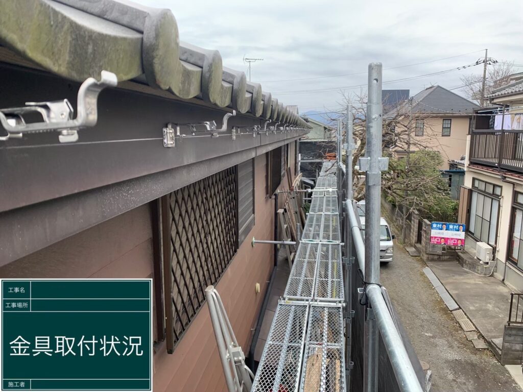 金具の取り付けの際は、既存の金具の位置から少しずらしています。そして、既存の金具があった穴は雨水が入らない様、コーキングで防水処理をし、塗装しております。
