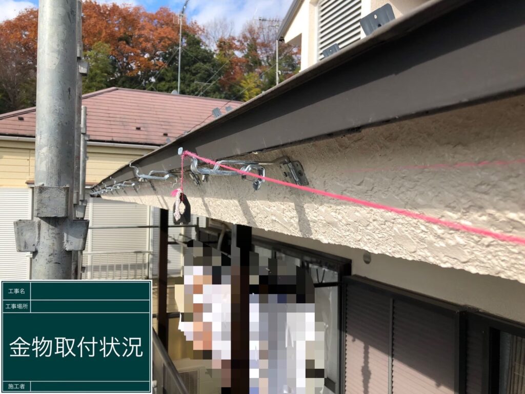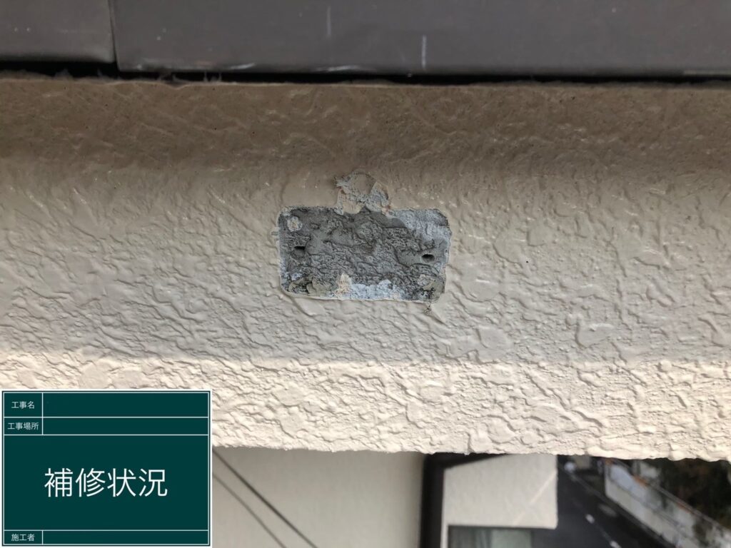 金具の取り付けの際は、既存の金具の位置から少しずらしています。そして、既存の金具があった穴は雨水が入らない様、コーキングで防水処理をし、塗装しております。