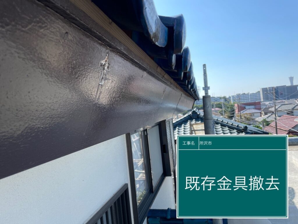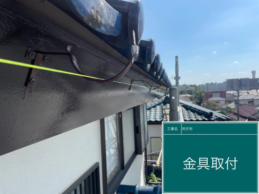 所沢市M様邸の雨樋交換では、新築時から年数が経過しているため、雨樋を支えている金具も同時に交換していきます。