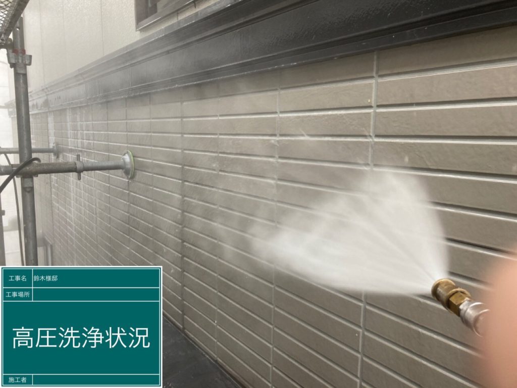 - 外壁も塗装する前に汚れを高圧洗浄で洗い流していきます。