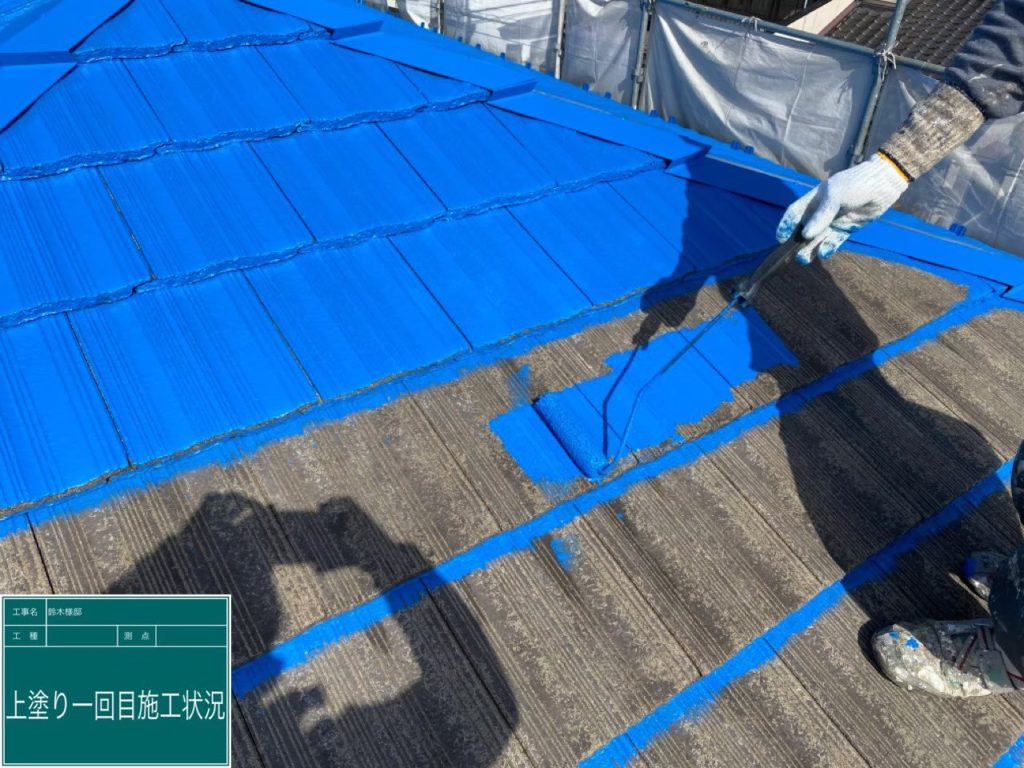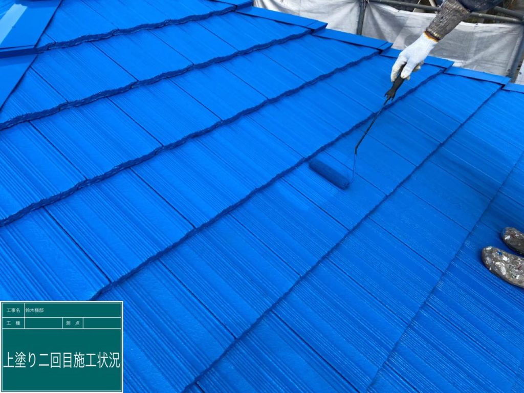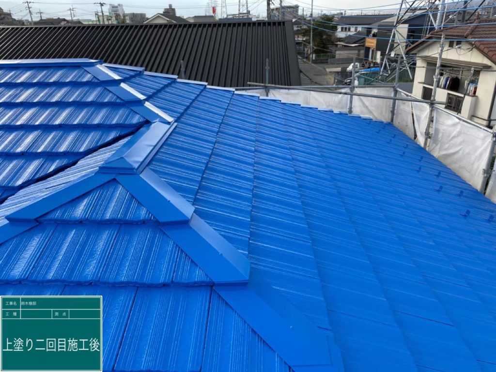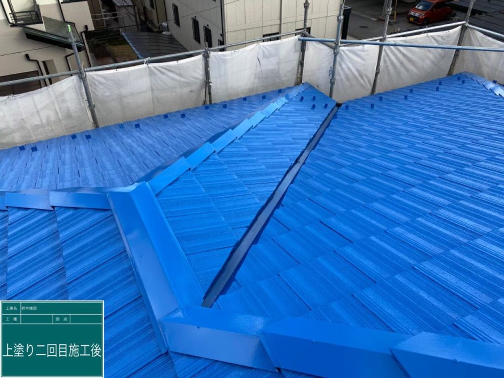 - 甲府市のS様は青色がお好みということもあり、今回の屋根塗装に関しては明るめの青色で仕上げました。