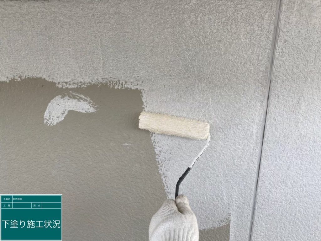 屋根・外壁塗装工事となります。屋根自体は大きな傷みもなく、目立つヒビ割れもありませんでした。